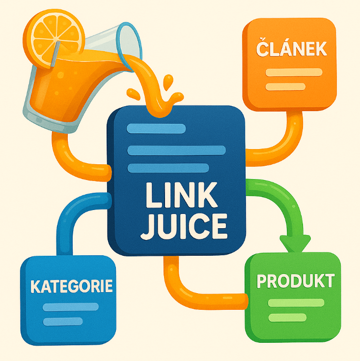 Link juice, někdy označovaný jako link equity, vychází z principu původního PageRanku. Každá stránka má určitou váhu, kterou může pomocí odkazů posílat dál. Pokud odkážete z homepage na kategorii, nebo z článku na produkt, část síly se přenáší na cílovou stránku.