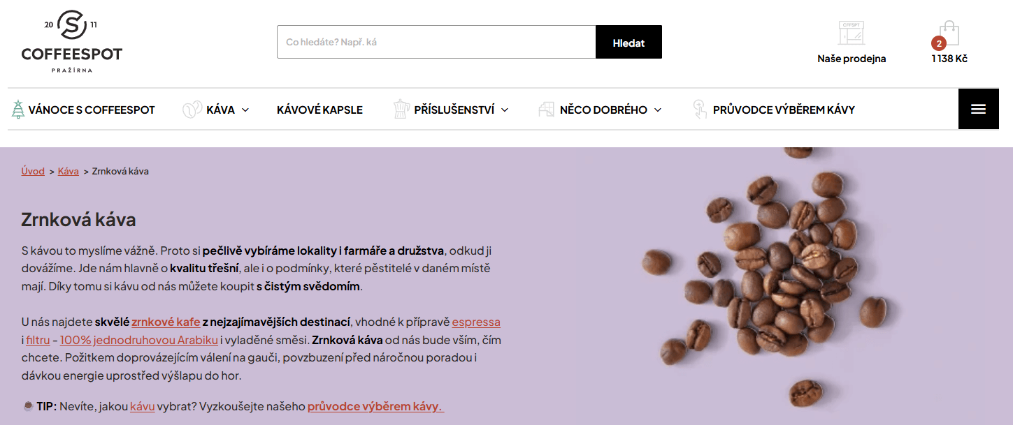Ukázka jak pracujeme s interním prolinkováním a link juice (Klient: Coffeespot)