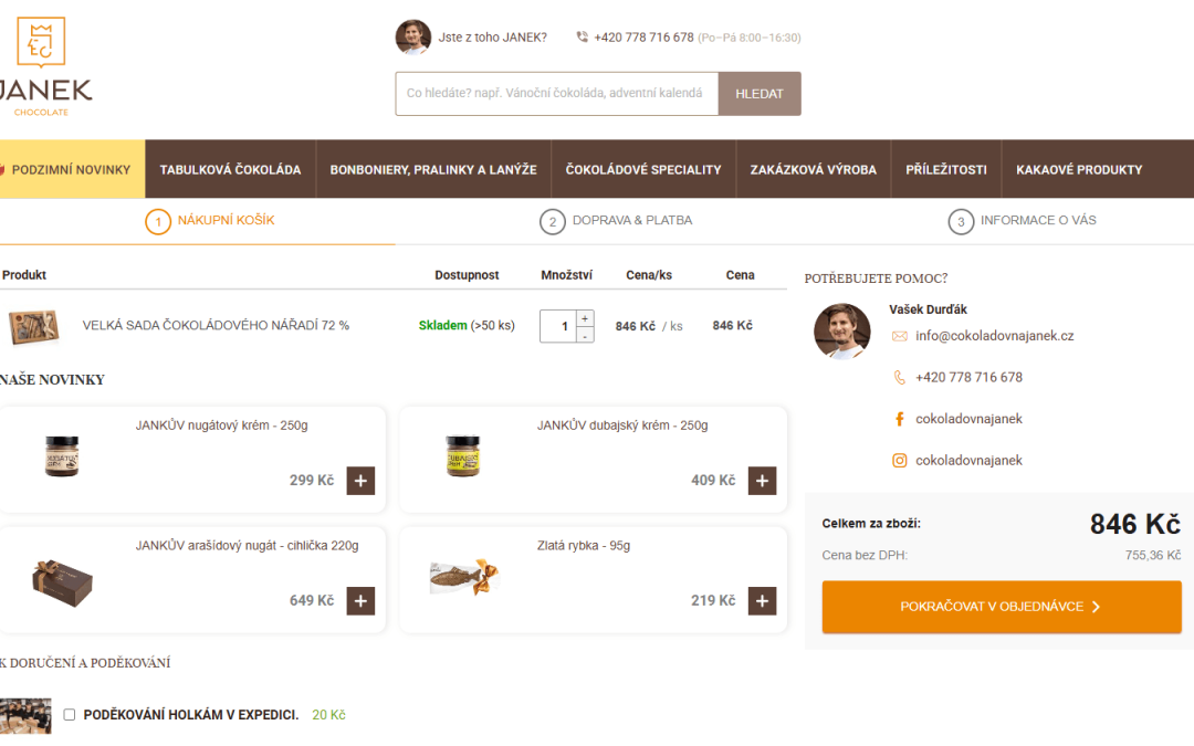 Ukázka prezentace produktů v košíku (Klient: Čokoládovna JANEK)