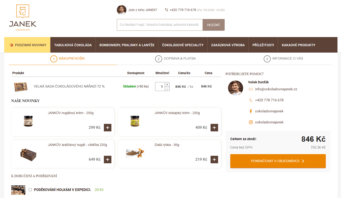 Ukázka prezentace produktových novinek v košíku (Klient: Čokoládovna JANEK)