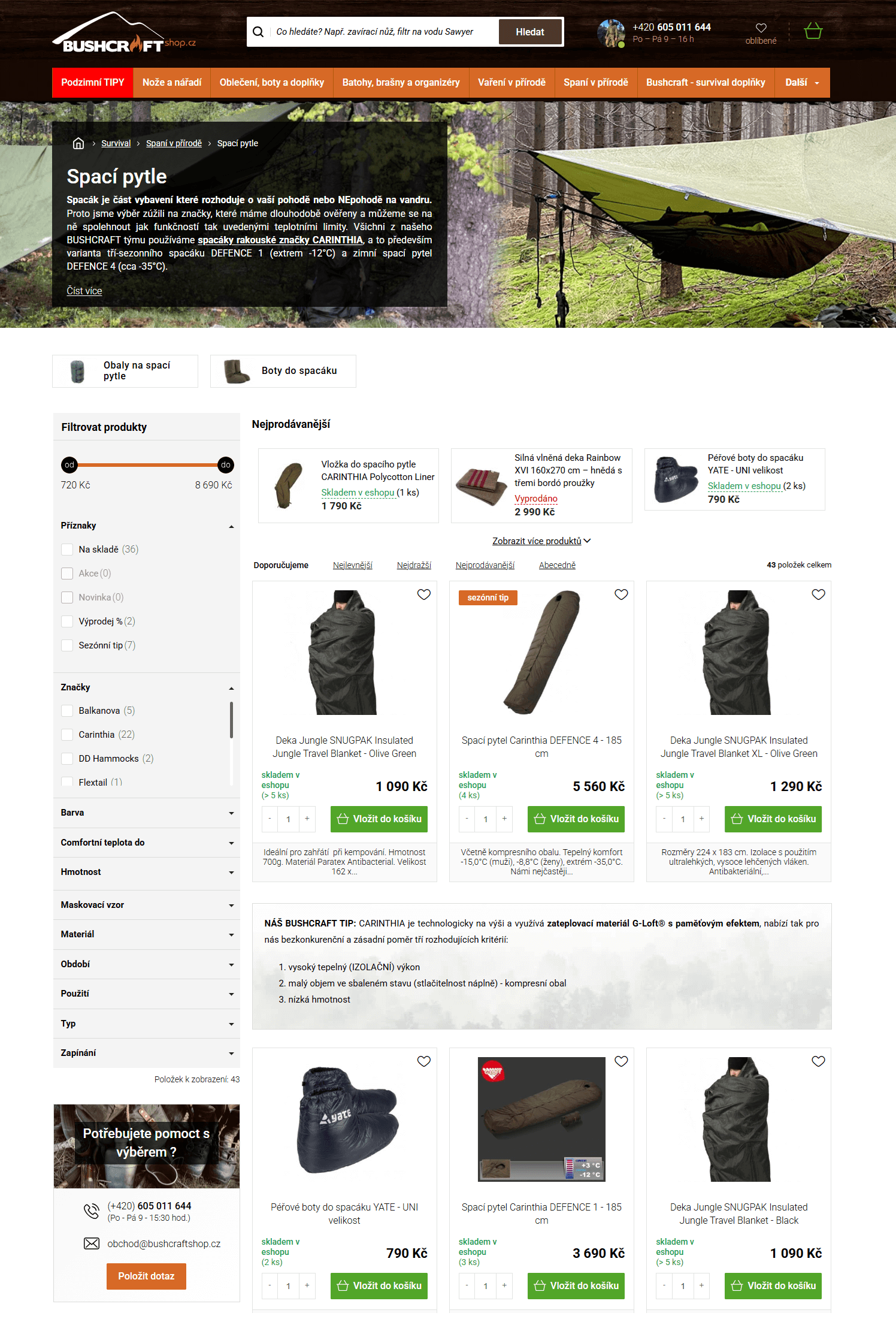 Ukázka UX úpravy kategorie na spacáky (Klient: Bushcraftshop | UX: Lukáš Dubina)