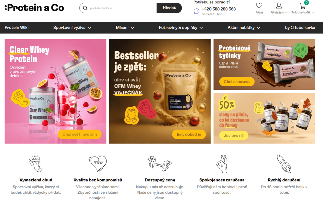 Ukázka grafické tonality, rozložení bannerů a USP (Klient: :Protein a CO | UX: Lukáš Dubina)